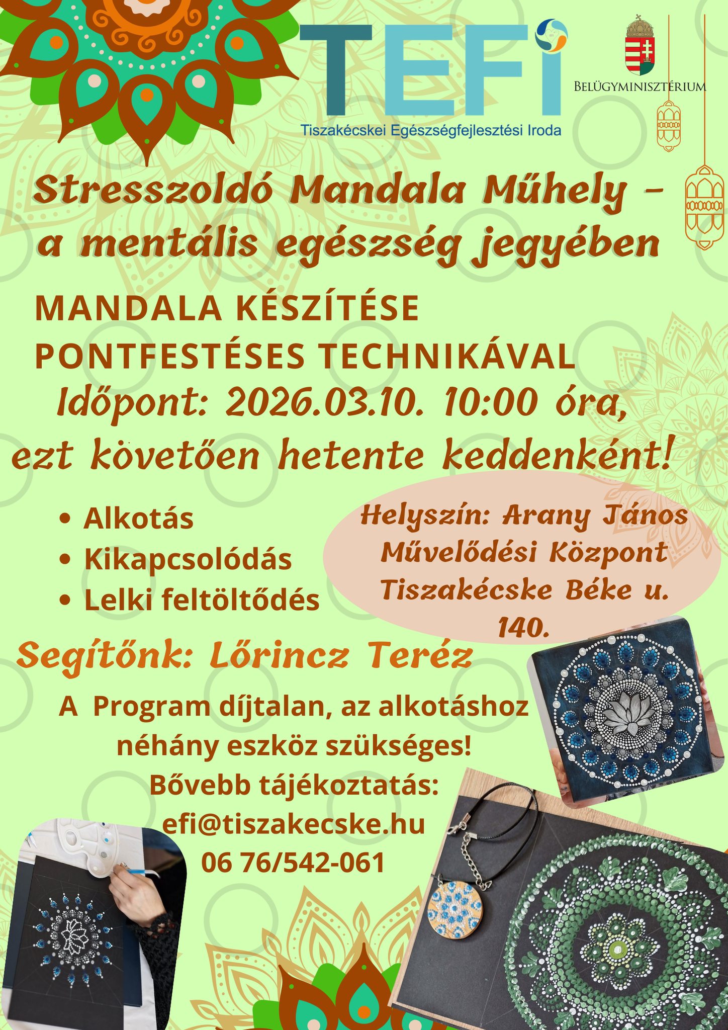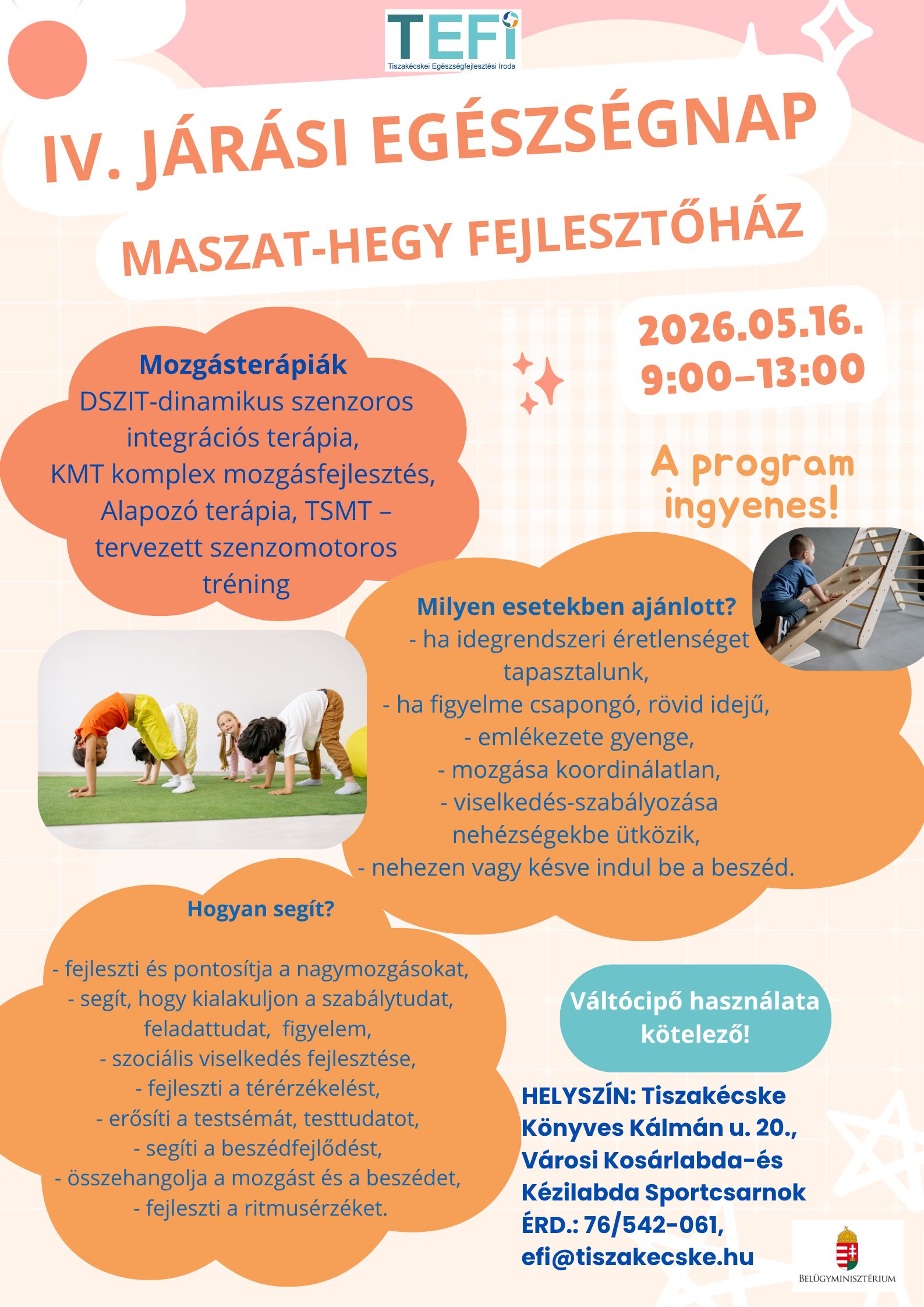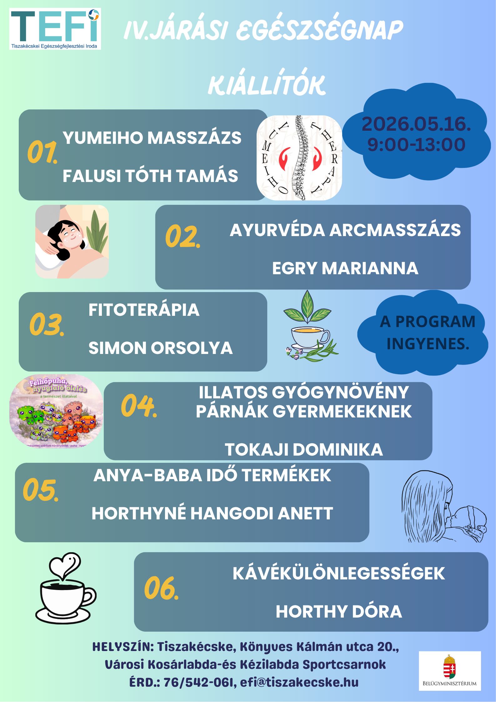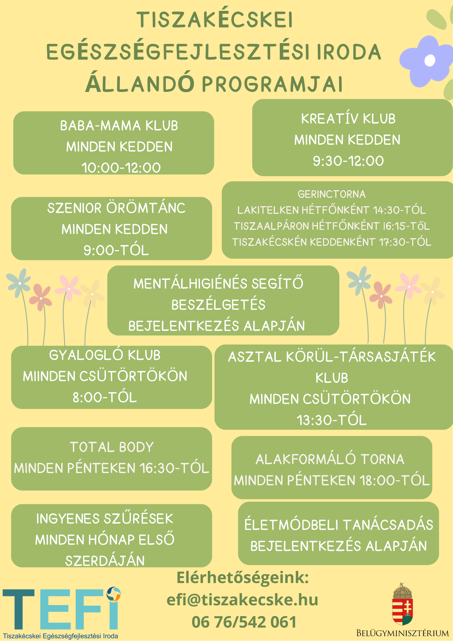 • Információnyújtás a helyben zajló egészségfejlesztési programokról.